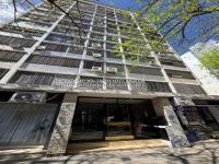 Departamento de un dormitorio en cuarto piso al frente con balcón en zona semicéntrica. Con cocina integrada al living-comedor, baño completo, baulera  y  cochera.